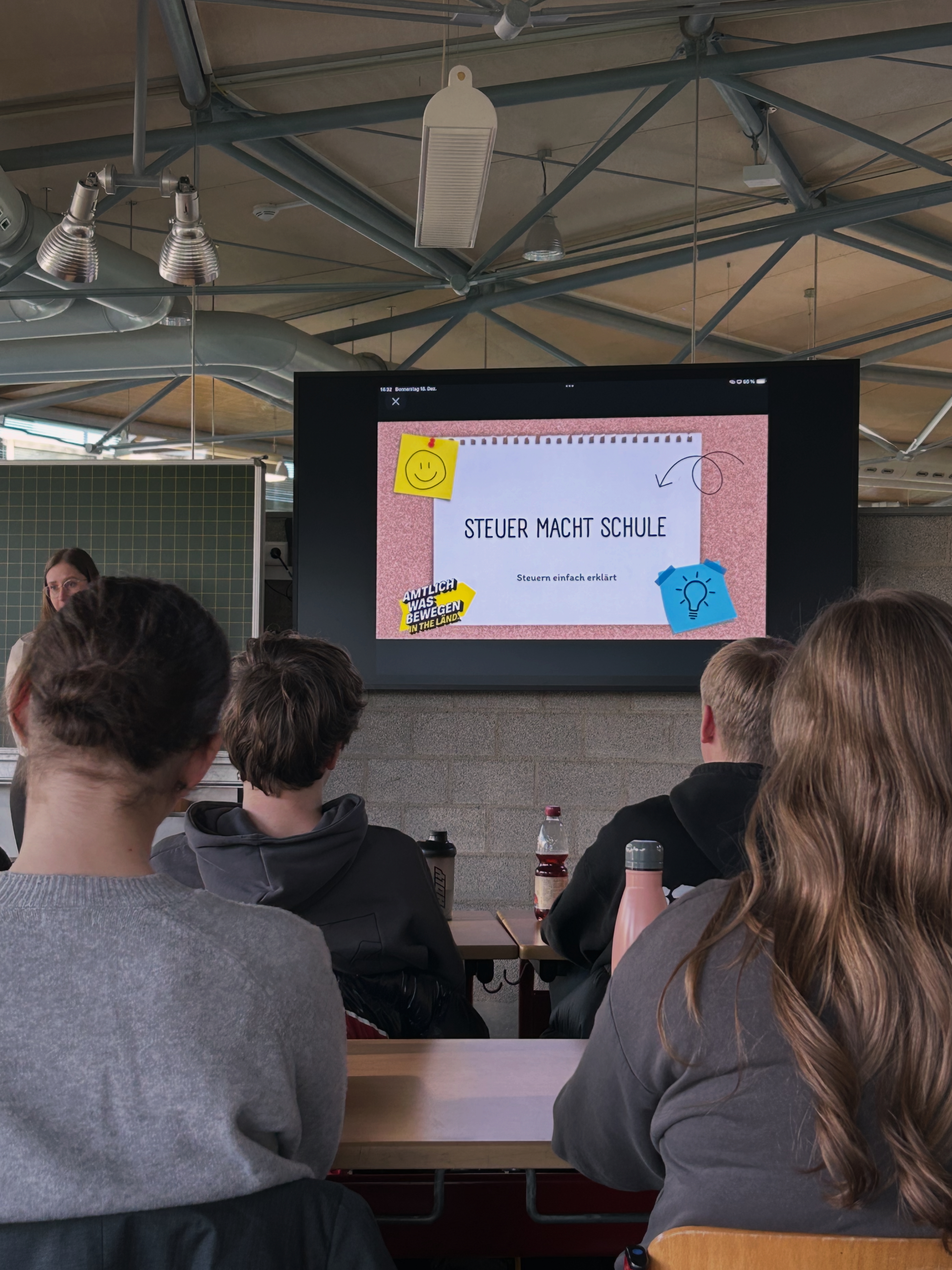 Im Rahmen des Projekts „Steuer macht Schule“ besuchte das Finanzamt Backnang den Leistungskurs Gemeinschaftskunde der Jahrgangsstufe 1.