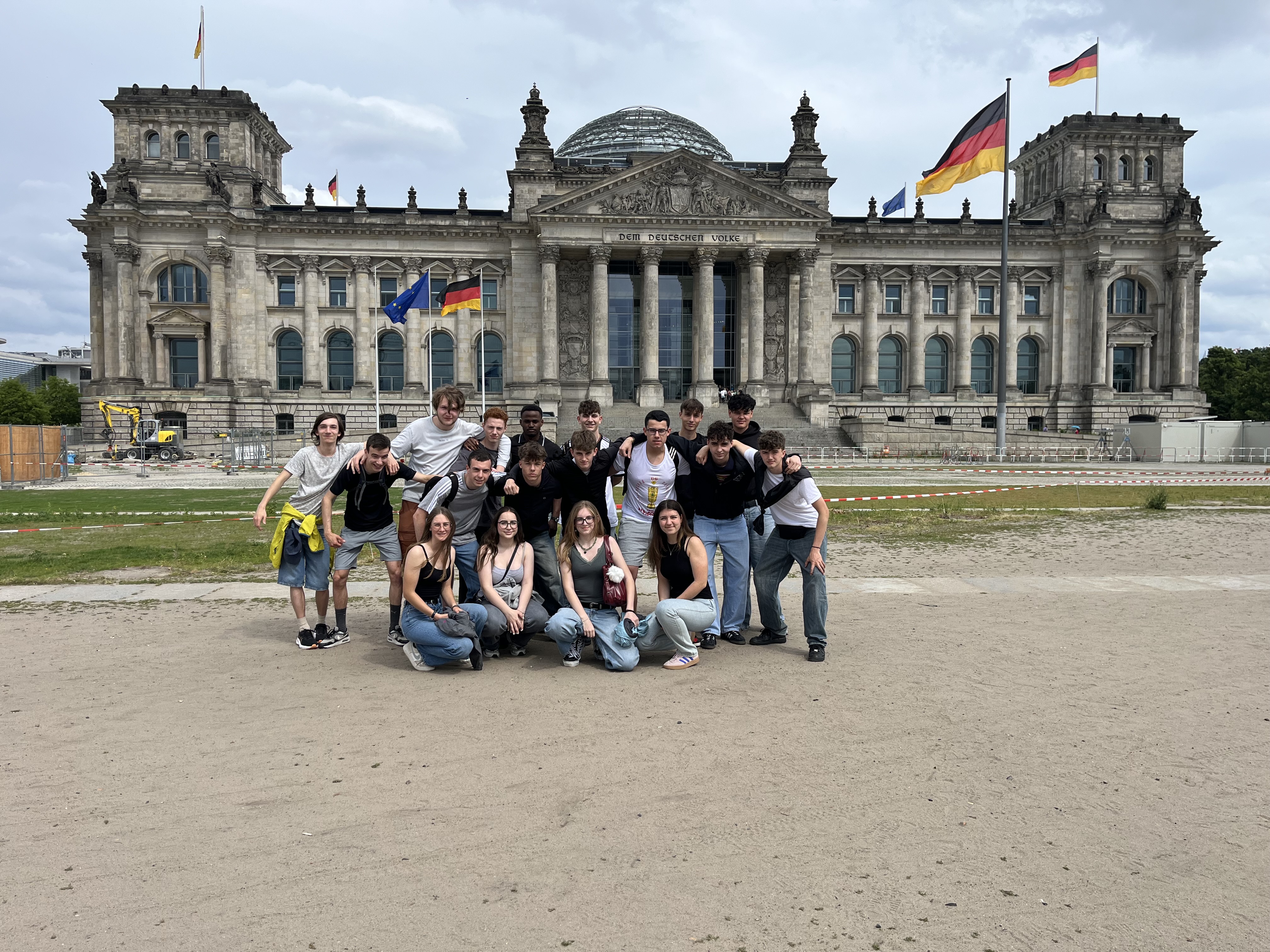 Nach diesem Schülerwunsch zu Beginn des Schuljahres machten sich am Mittwoch, den 04.06.25, 18 Schülerinnen und Schüler mit Fach Gemeinschaftskunde und/oder Wirtschaft aus der Jahrgangsstufe 1 gemeinsam mit Herrn Urbild und Herrn Kamm für eine dreitägige Schulfahrt auf den Weg in die Hauptstadt.