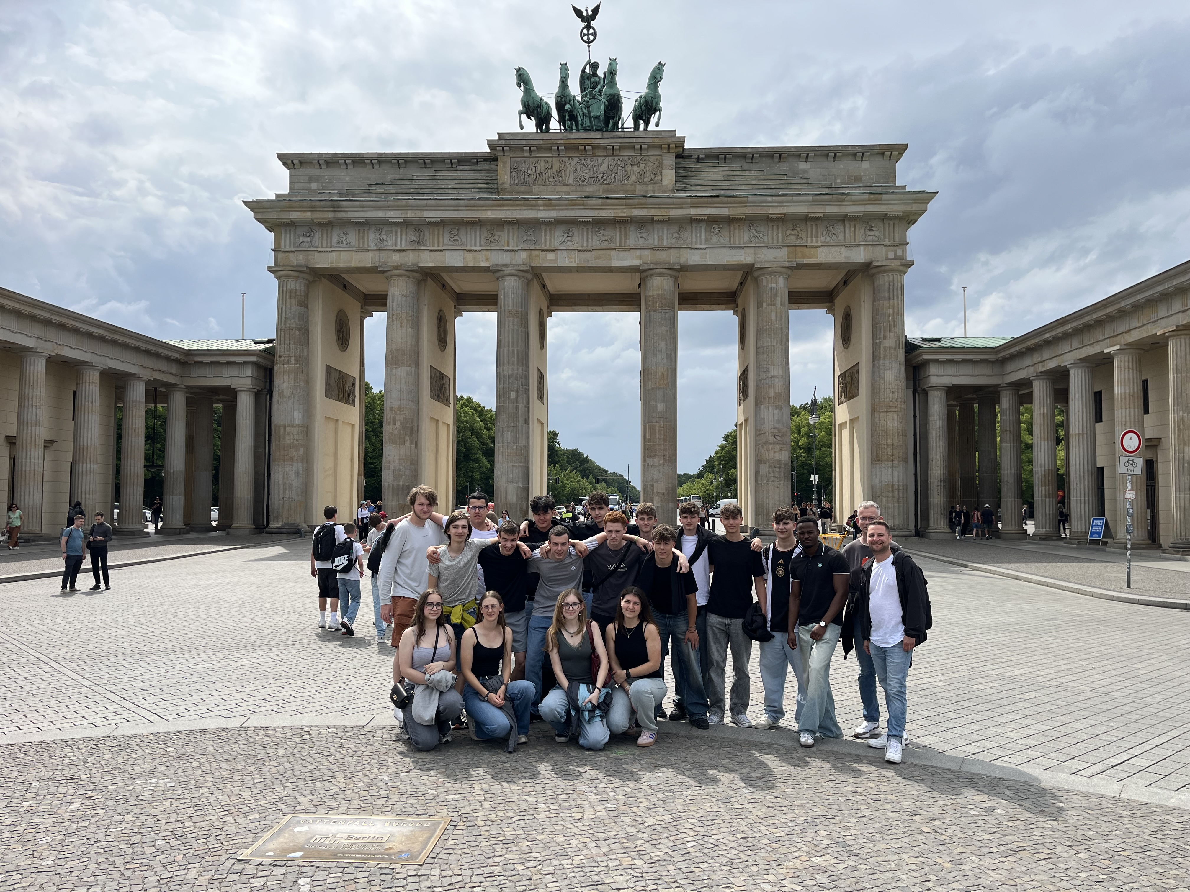 Nach reibunsloser Zuganreise und Check-in im Hotel stand der erste Teil des von Schülerreferaten begleiteten Stadtrundgangs an. Dabei stoppten wir am Brandenburger Tor, dem Gendarmenmarkt, Unter den Linden, beim Berliner Dom und am Alexanderplatz. Der Abend klang dann bei Currywurst, Döner oder arabischem Essen, sowie dem Schauen des Fußballländerspiels aus.