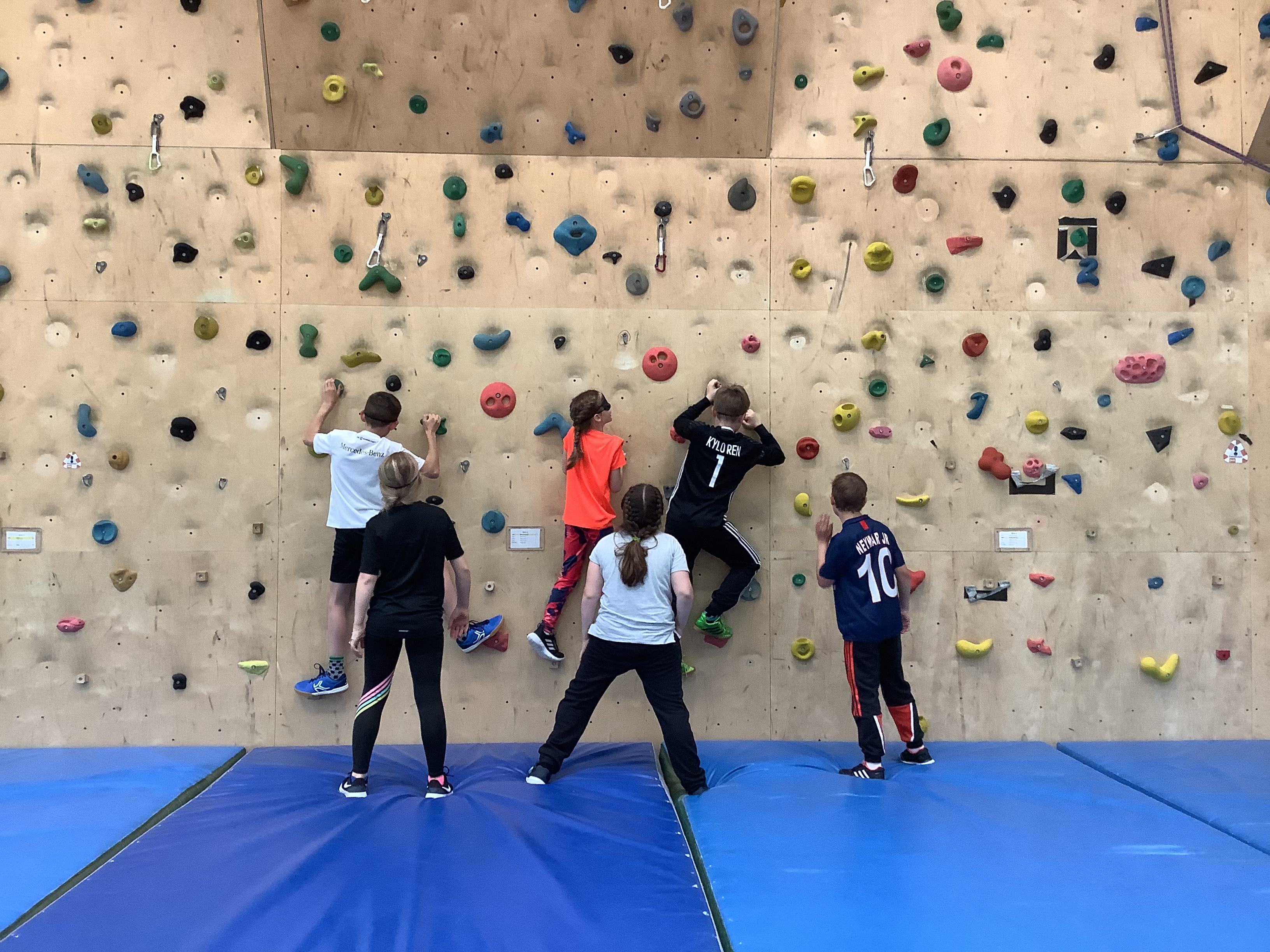 Hoch hinaus geht es an unserer großen Kletterwand in der Sporthalle.