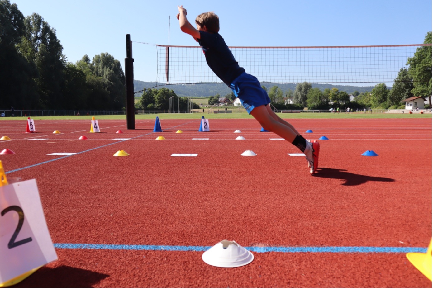 Folgende Stationen sind zu absolvieren: der Hindernisparcours, der Fünfer-Hop, bei dem es mit fünf Sprüngen aus dem Stand die weiteste Distanz zu erreichen gilt, der Medizinball-Weitwurf und der 25-minütige Ausdauerlauf, der die Schülerinnen und Schüler erheblich ins Schwitzen bringt. Ein besonderes Highlight ist das Völkerballturnier bei dem auf Klassenstufenebene gegeneinander gespielt wird.